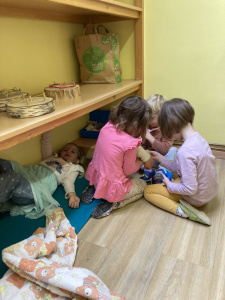 Poleg tega smo posebno pozornost namenili tudi ročnim spretnostim. Otroci so preko igre in ustvarjalnih dejavnosti spoznavali osnovne tehnike šivanja. Sodelovali smo tudi z lokalno šiviljo, ki nam je prikazala pripomočke za šivanje in predstavila svoj poklic. Otroci so z zanimanjem spremljali prikaz in se preizkusili v ročnih spretnostih.
