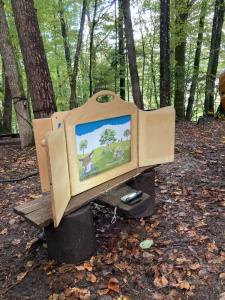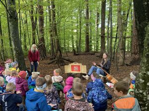 Gozdna kamišibaj predstava – po zgodbi Pod medvedovim dežnikom, katero so soustvarjale vzgojiteljice (od ilustracij do izvedbe), smo razmišljali o sočutju in prijateljstvu.
