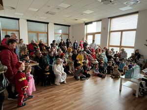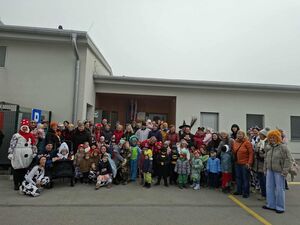 Velik del meseca pa je zaznamoval tudi pustni čas, ki je v naš vrtec prinesel veliko veselja, smeha in ustvarjalnosti. Otroci so spoznavali pustne običaje in pomen pusta, se učili pustne pesmice in deklamacije ter izdelovali pisane maske. Skupaj smo okrasili igralnice z barvitimi verigami in okraski ter ustvarili pravo pustno vzdušje. Poseben dogodek je bil tudi tradicionalni pustni pohod po Bitnjem z babicami in dedki, ki je minil v prijetnem, razigranem in veselem vzdušju.