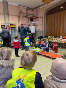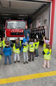 Obiskali smo tudi Gasilsko prostovoljno društvo Bitnje, kjer smo spoznali pomembno in pogumno delo gasilcev. Otroci so si z zanimanjem ogledali gasilsko opremo, vozila in prisluhnili razlagi, kako gasilci pomagajo ljudem v različnih situacijah.