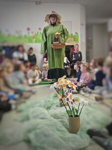 Za konec pa je Pomlad namenila nekaj besed tudi bližajočemu se prazniku za mamice(Materinski dan).Ob glasbeni spremljavi smo skupaj zapeli »Jaz pa grem na zeleno travco«.