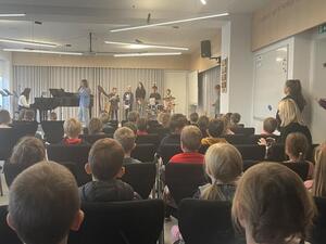 Po jesenskih počitnicah in praznikih smo se polni energije vsi skupaj vrnili v vrtec, kjer so že čakale nove dejavnosti in dogodivščine. Prvi dogodek, sicer samo za starejšo, predšolsko skupino, je bil obisk glasbene šole. Tamkajšnji učitelji in učenci so nas popeljali po poti glasbil in nam pokazali, na katera glasbila se lahko naučimo igrati. Predstavili so vse, od tolkal in brenkal pa vse do godal, pihal ter trobil. Otroci so vneto poslušali in bili navdušeni, Prav možno je, da bo v prihodnjih letih tudi kateri izmed njih znal zaigrati na katero od njih.