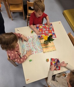 V tem mesecu nas je še posebej razveselil Tradicionalni slovenski zajtrk, ki smo ga doživeli v prav posebnem, prazničnem vzdušju. Obiskale so nas nekdanje vzgojiteljice in s seboj prinesle domač kruh ter miške, kar je naše jutro še polepšalo. Mize smo okrasili s svežim rezanim cvetjem, za vsakega otroka pripravili pogrinjek, celotno igralnico pa je krasila velika čebela, ki smo jo ustvarili s tehniko lepljenke. Otroci so gostjam ponosno zapeli pesmico Čebelica in predstavili deklamacijo Hruške. Zajtrk je potekal v toplem, prijetnem vzdušju, otroci pa so se pri tem počutili pomembne in ponosne, saj so sodelovali pri pripravah.