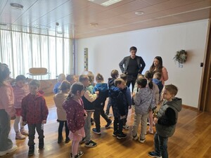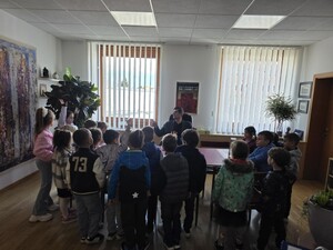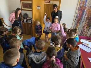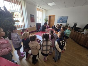 Župan je otroke zelo prijazno sprejel in jim namenil nekaj časa za pogovor. Otroci so mu zastavili veliko zanimivih vprašanj. Spraševali so ga na primer, ali je moral hoditi v šolo za župana, kam je hodil v vrtec, ali ima kakšno domačo žival in kaj vse dela kot župan.