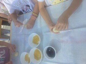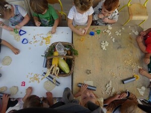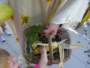 Skupaj s Strašilkom so otroci so spoznavali jesenske pridelke – koruzo, buče, jabolka, korenje, bučo, repo…
