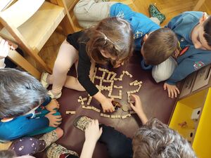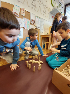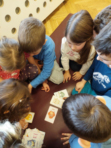 Ob branju zgodb z različno razrešitvijo konfliktov so otroci v manjših skupinah sodelovali pri ustvarjalnih in miselnih dejavnostih. Risali so potek zgodb, prepoznavali in razvrščali čustva glede na dogajanje ter s pomočjo figur in kock uprizarjali zgodbe in iskali mirnejše rešitve za konfliktne situacije.
