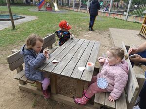 Strokovne delavke smo pripravile postaje na katerih so se otroci razgibali in se urili v različnih spretnostih. Ob opravljeni nalogi so na kartonček prejeli štampiljko, na koncu pa je bil trud poplačan z slastnim sladoledom.