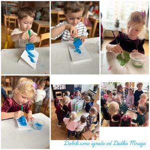 December v vrtcu Najdihojca je bil prežet z veseljem, toplino in pričakovanjem. Otroci so z navdušenjem sodelovali pri okraševanju vrtca, ustvarjanju prazničnih okraskov in voščilnic, peki dobrot ter glasbenem rajanju. Posebni trenutki, kot so obisk Dedka Mraza, praznični sprehod po okrašenem Kranju, kino dan, sprehod s starši in lanternami in pižama party, so otrokom pričarali nepozabna doživetja. Vzdušje je bilo sproščeno, igrivo in polno smeha, otroci pa so v skupnih dejavnostih uživali, se povezovali in doživljali praznični čas na pristen, otroški način.