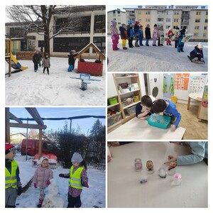 Mesec januar nas je razveselil s pravo zimsko pravljico. Sneg nam je pričaral nasmehe na obraze in veliko časa smo preživeli na prostem – kepali smo se, ustvarjali snežne sledi, občudovali zasnežena drevesa ter uživali v čarobnosti bele narave. Zimske radosti so nas spremljale tudi v igralnici, kjer smo raziskovali zimo na različne ustvarjalne in igrive načine.