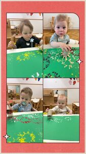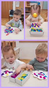 Veliko časa smo namenili tudi ustvarjanju. Slikali smo s prstki, raziskovali različne barve in občutke. Otroci so uživali v raziskovanju materialov in izražanju svoje ustvarjalnosti.