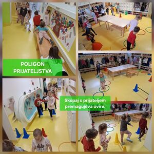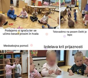 Skupinska umetnina »Ustvarjanje prijaznosti«, prijazni portreti prijateljev ter gibalne igre, kot sta poligon sodelovanja in balon prijaznosti, so nas spomnili, da je prijaznost lahko del vsakega trenutka dneva – doma, v vrtcu in med igro.