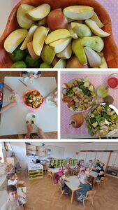 Kot vedno smo poskrbeli tudi za zdrave navade. S preprostim eksperimentom »Kako virusi zbežijo« so otroci nazorno spoznali, kako pomembno je umivanje rok z milom. Pripravljali smo sadno malico in otroke spodbujali k pogostemu uživanju sadja.