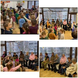 Mesečno sodelujemo tudi z Domom upokojencev, kjer stanovalce razveselimo s pesmijo, plesom in našo igrivo otroško energijo.