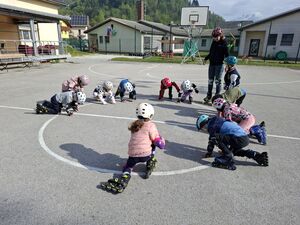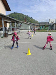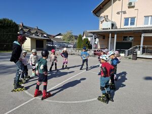 V drugem tednu aprila smo v Živ žavu pod vodenjem naše športne pedagoginje Marjete Remic izvedli tečaj rolanja. Sodelovali so najstarejši otroci v vrtcu ter pri tem usvajali in razvijali raznovrstne spretnosti, ki so osnova za rolanje. Z dodatno rezervno opremo je bilo poskrbljeno tudi za otroke, ki svoje opreme nimajo. Tečaj smo izvedli na košarkarskem igrišču Prošporta.