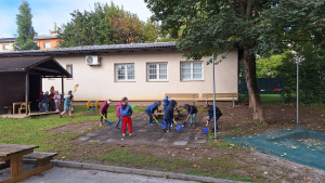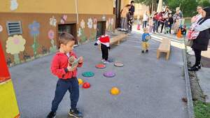 V tednu otroka z naslovom » Prijaznost ti bo dala krila – vedno reci prosim in hvala«, smo imeli različne delavnice, zbirali odpadni papir, imeli delovno akcijo in v popoldanskem času gibalne igre skupaj s starši na igrišču vrtca.