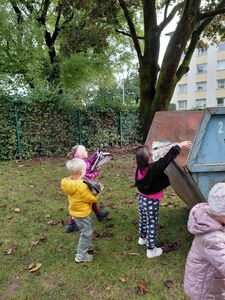 Veter in šelestenje listja so otrokom prinašali veliko veselja. Na igrišču so se igrali z listjem, ga grabili in dajali na kup.